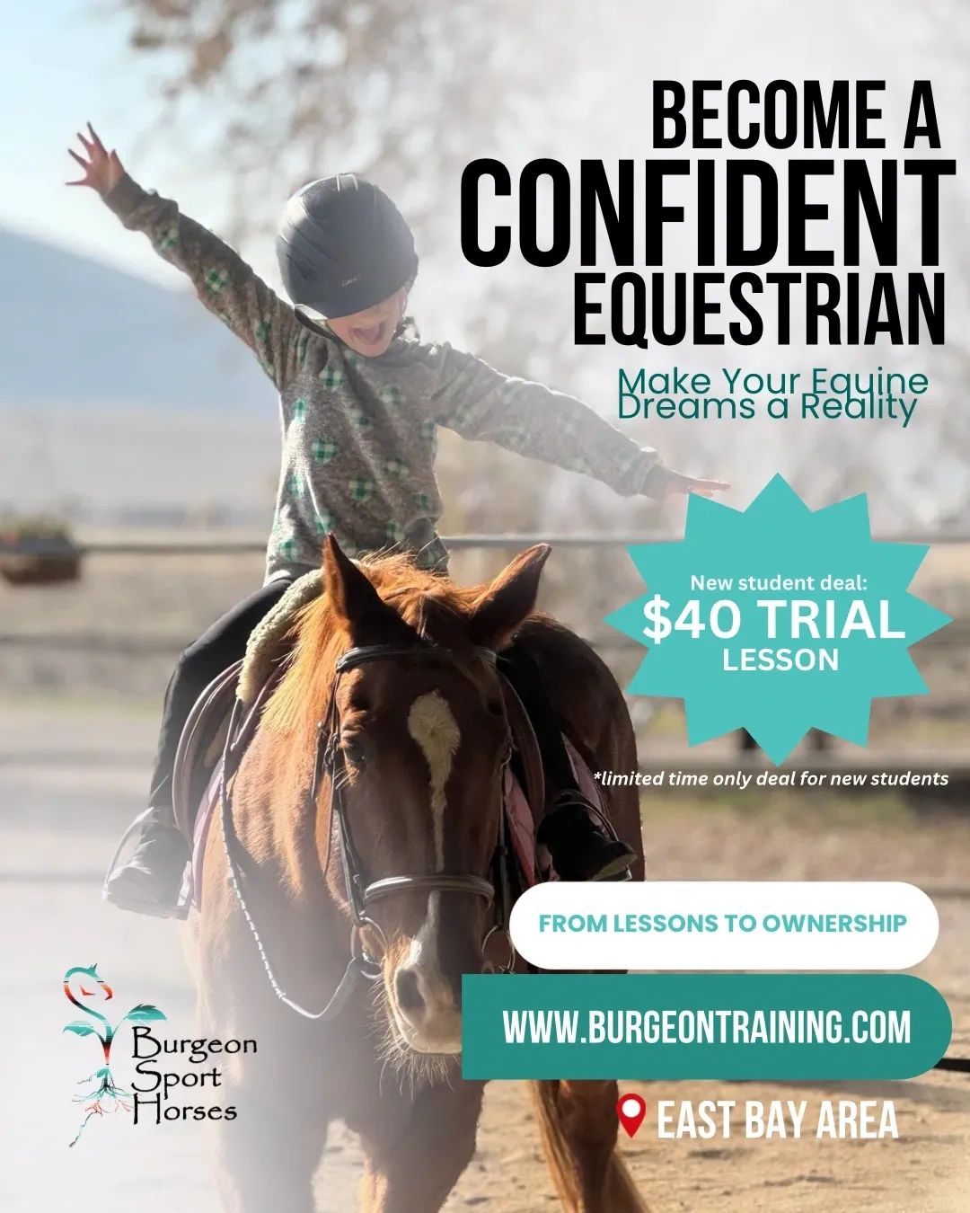 Join our Burgeon Training Team ! From Beginner Horseback Riding Lessons to Full Training in Dressage & Eventing.